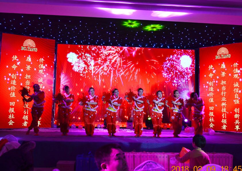 隨著一曲歡快的音樂,舞蹈人員翩翩起舞,安丘博陽機(jī)械2018年年會(huì)慶典正式拉開帷幕。 大會(huì)伊始,博陽總經(jīng)理閆吉祥先生進(jìn)行大會(huì)致辭。閆總首先講述了博陽機(jī)械2017年目標(biāo)完成情況,說到年產(chǎn)值比去年翻了一備時(shí),現(xiàn)場(chǎng)響起了久久不息的掌聲,掌聲里,飽含了所有員工的感動(dòng)和對(duì)成功的驕傲與自豪;接下來閆總帶我們一起回顧了共同走過的2017,各崗位的艱辛與歷程,尤其我們的外出調(diào)試人員,為了工作,雖然缺席我們的年會(huì)慶典,但是他們的辛苦與付出是我們所有人學(xué)習(xí)的榜樣。 接下來是歡樂與榮譽(yù)的穿插進(jìn)行曲。參與節(jié)目的每一位同志,發(fā)揮了*高的水平,聲聲深情,引吭高歌。在歡歌笑語中,是各崗位**員工的表彰及頒獎(jiǎng)環(huán)節(jié),當(dāng)手中接過證書及獎(jiǎng)金的時(shí)候,既是對(duì)2017年付出*好的回報(bào),也是2018年一份沉甸甸的責(zé)任,正是每一位的辛勤付出,才有了年底我們坐在這里的舉杯聯(lián)歡。穿插在節(jié)目當(dāng)中的,還有大家都殷切期盼的抽獎(jiǎng)環(huán)節(jié),大獎(jiǎng)連連出,驚喜不間斷。