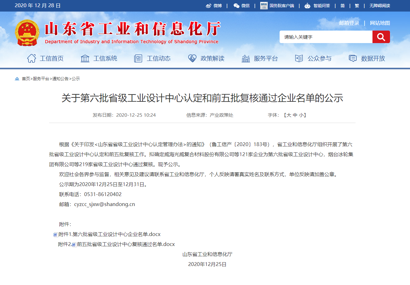 2020年12月25日,省工信廳公布2020年山東省省級工業(yè)設(shè)計中心名單,安丘博陽機械制造有限公司高端裝備工業(yè)設(shè)計中心成功入選。此次獲得山東省“省級工業(yè)設(shè)計中心”,是博陽機械在省級科研設(shè)計平臺建設(shè)方面榮獲的一項重要榮譽,也是政府對公司工業(yè)設(shè)計創(chuàng)新能力的充分肯定。