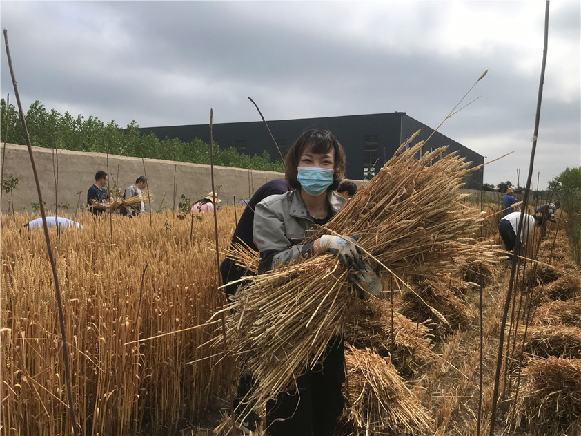 春爭日,夏爭時(shí)?,F(xiàn)在正值小麥豐收的季節(jié)。6月9日上午,在公司廠區(qū)的田野里,微風(fēng)習(xí)習(xí),麥香撲鼻,由三十余人組成的手工割麥大軍,