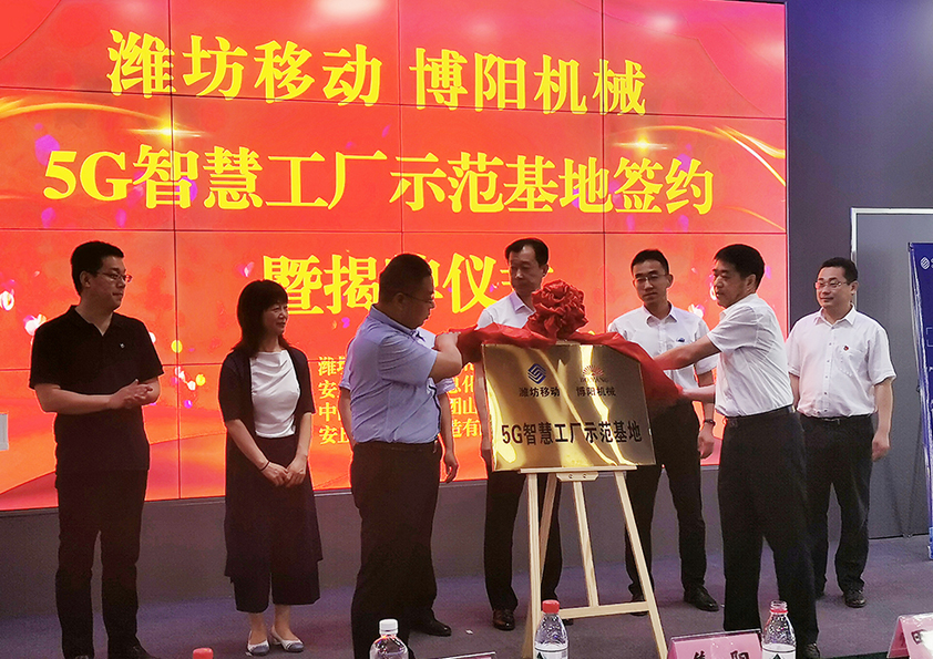 揭牌儀式上,博陽機械總經(jīng)理閆吉祥、中國移動濰坊分公司副總經(jīng)理焦陽、濰坊市工信局四級調(diào)研員韓志東等領(lǐng)導(dǎo)發(fā)表重要講話,隨后舉行了簽約暨揭牌儀式。